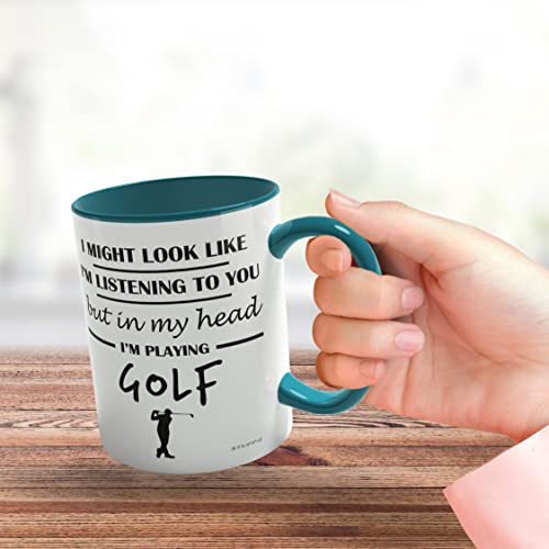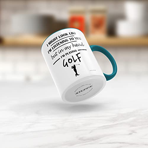 Stuff4 Golf Gifts for Men – in My Head I'm Playing Golf Mug – Funny Presents for Men, Gifts Golfers Presents, Lover Gift Ideas, 11oz Ceramic Light Blue Handle Premium Mugs