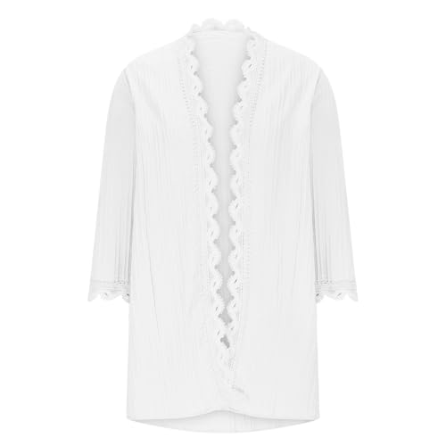 Summer Cardigan Kimono Cardigan Lightweight Solid Color Beach Ladies Clothing Casual Thin Cover Up Lace Side Open Front Sweaters 3/4 Sleeve Women's Jacket White