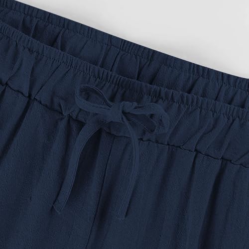 Yuson Girl Linen Trousers Summer Beach Casual Elastic Waist Tapered Drawstring Pockets Harem Lightweight Lounge Pants