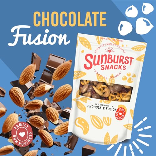 Sunburst Snacks Chocolate Fusion Nut Mix, Roasted & Salted Nuts Blended with Chocolate and Pretzels, Includes Almonds, Cashews, Peanuts & Cranberries, 500G