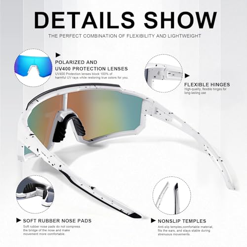 【Crystal clear vision】Upgrade your cycling gear with our TAC lenses that offer exceptional clarity and adaptability to different lighting conditions while protecting your eyes from harmful UV rays. Our sports sunglasses offer excellent light transmission, contrast and superior durability for all your adventures. Experience the ultimate ride with our world-class cycling goggles designed specifically for sports enthusiasts