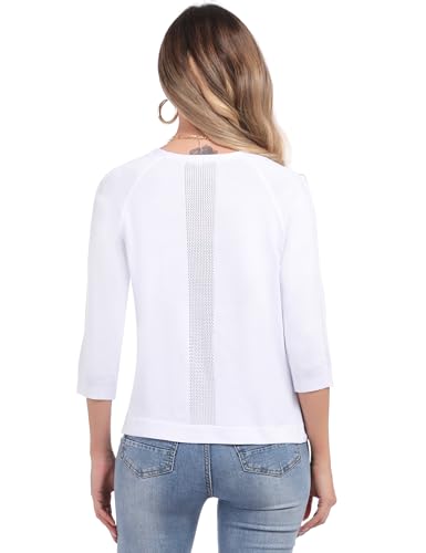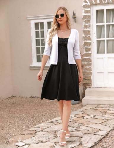 Sykooria Women's Cardigans Cropped Cardigan 3/4 Sleeve Shrugs Ladies Open Front Lightweight Sweater Elegant Dress Cover Up White