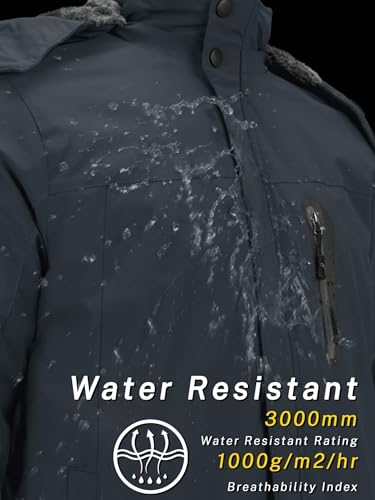 - Warm and Windproof: Men's waterproof jacket with thick fleece is warm and soft. Full zipper, adjustable hem and cuffs effectly prevent wind, keep you warm in cold weather