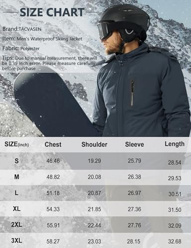 TACVASEN Men Hiking Waterproof Jacket Winter Warm Ski Outdoor Windproof Coat with Zip Detachable Hood Carbon Grey,2XL