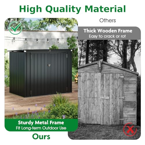TANGZON 6 x 3 FT Metal Garden Shed, Outdoor Trash Can Storage Shed with Top Flip Cover, Hydraulic Gas Rod & Lockable Door, Weatherproof Gardening Tool Organizer for Backyard Lawn Patio (Dark Grey)