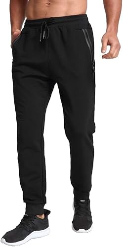 Tansozer Tracksuit Bottoms for Men Gym Sports Trousers Mens Joggers Slim Fit Cotton Jogging Bottoms with Zip Pockets Sweatpants (Black, Small)