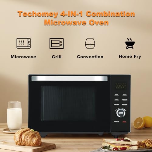 - [8-in-1 Smart Cooking Modes] Techomey combination microwave air fry features 8 advanced functions: combination cooking, low-temperature control, defrost, speedy cooking, 10 auto menus, crispy grill, deodorization, and steam clean. Whether you're reheating leftovers or preparing a fresh meal, this combination microwave oven and grill adapts to your culinary needs effortlessly.