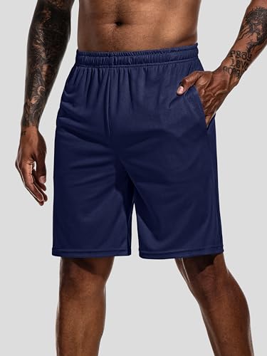TACVASEN Running Shorts Men Breathable Gym Shorts with Zip Pocket Blue Grey,36