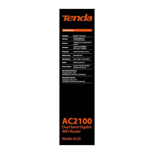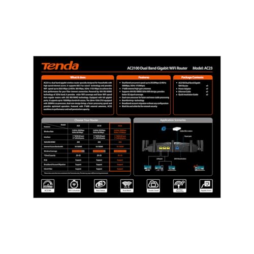 Tenda AC23 AC2100 Smart WiFi Router – Dual Band Gigabit Wireless (up to 2033 Mbps), 1400 sq ft Coverage for Large Home, Parental Control, 4X4 MU-MIMO, 7 * 6dBi External Antennas, Alexa Compatible