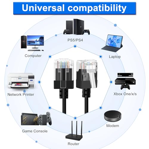 - ⚡Wide Compatibility: Cat6A Ethernet cables can reach up to 32AWG, providing universal connections for LAN network components such as PCs, computer servers, printers, routers, switches, network media players, NAS, VoIP phones, PoE devices, etc.