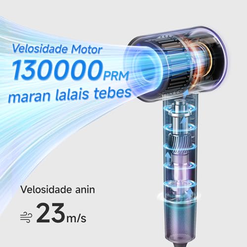 - High-Speed Hair Dryer: Our advanced 130,000 rpm high-speed motor technology achieves an overwhelming wind speed of 23 m/s and a large airflow of 3 m³/min! Compared to traditional hair dryers, drying time is reduced by up to 60%, delivering ultra-fast drying performance.