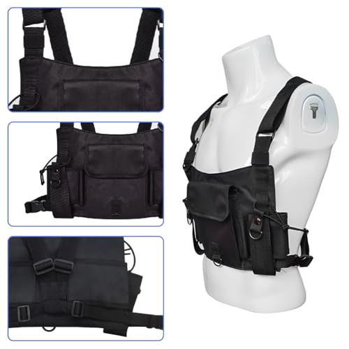 Tactical Chest Rig Pack for Men, Multi Pocket Airsoft Chest Rigs Comfortale Combat Harness Radio Chest Kit Running Pouches Crossbody Bags Holster Vest Black Backpack with Widen Shoulder Strap