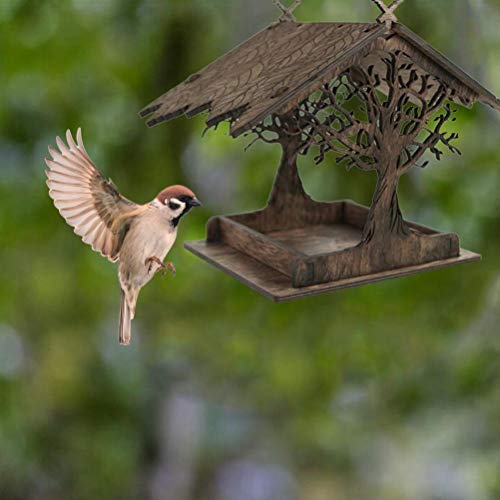 TiSkying Bird Feeder, Wooden Bird Feeder Hanging Tray for Seed Containers, Feeding Station for Wild Birds