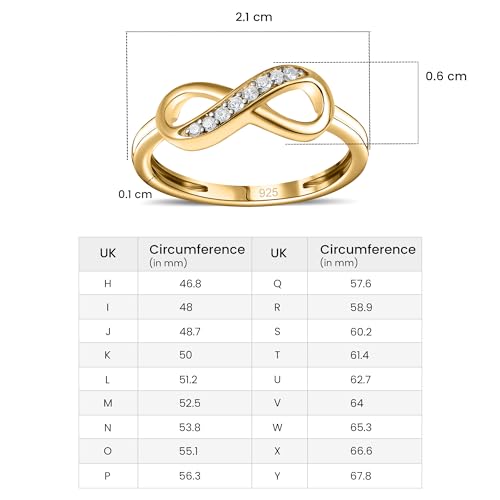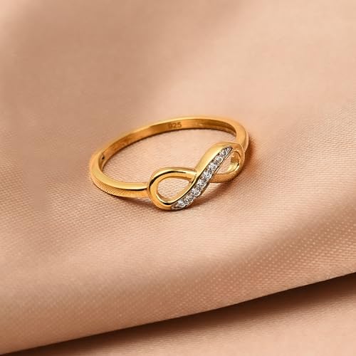 TJC Infinity Ring for Women In Gold Plated 925 Sterling Silver Cubic Zirconia CZ Forever Love Rhodium Plated for Ladies Size N