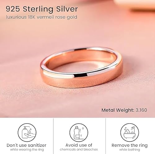 TJC Silver Rings for Women – 925 Sterling Silver Wedding Band Ring, 4mm Width, Rose Gold Plated Ladies Ring, Promise Rings, Trending Fashion Jewelry Sizes N