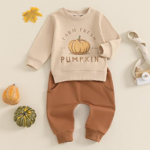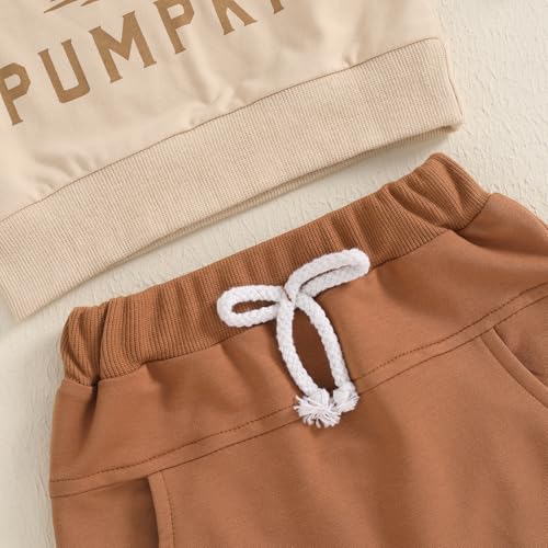 PanLidapan Toddler Baby Boys Halloween Outfit Pumpkin Pattern Letter Print Jumper Sweatshirt Pants Trousers Sweatpants Jogger Fall Clothes (Khaki, 12-18 Months)