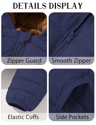 Toddler Boys Zip Up Bubble Coats Hooded Down Jacket Plush Puffer Outerwear Thick Sherpa Fleece Outfit Navy Blue 2-3T