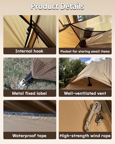 - 【 Four-Season Ready Design 】Constructed with 20D nylon fabric and a PU3000mm waterproof rating, the rainfly offers reliable protection against light to moderate rain. Strategically placed ventilated windows and full-mesh inner panels promote excellent airflow, reducing heat and humidity in summer and minimizing condensation in winter. The nylon ceiling panel prevents dripping, and the inner tent can also be used independently, making it a versatile shelter across seasons.
