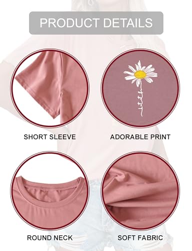TOPLAZA Daisy Graphic T Shirt Women Short Sleeve Crew Neck Casual Summer Tee Tops, Pink, M