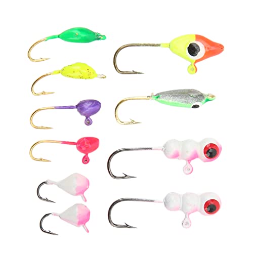- COMPACT TRAVEL-FRIENDLY STORAGE CASE: Pack all 10 jigs neatly in the included Ice Fishing Jigs Set case—ideal for snowy expeditions or tossing in your tackle box without tangling hooks