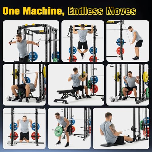 ToughFit F4 Smith Machine, Power cage with Adjustable Cable Crossover System, All-in-One Squat Rack Training Equipment for Home Gym