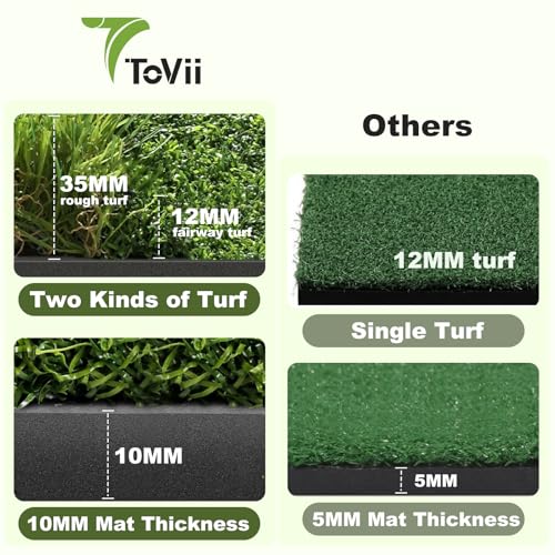 - HIGH QUALITY PP MATERIAL: The turf of ToVii golf hitting mat is made of sturdy, high-density PP material, which is strong enough to withstand thousands of swings and practice. Close to real turf to provide a good golf hitting experience