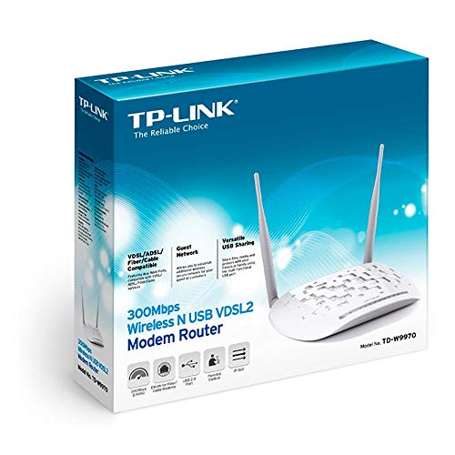 TP-Link 300 Mbps Wireless N VDSL/ADSL Modem Router, Support Modem Only Mode, 1 USB, 2.0 Port, UK Plug (TD-W9970) (Refurbished)
