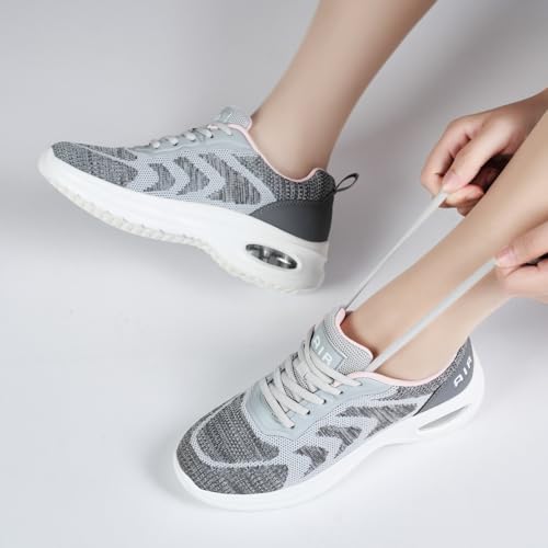 Trainers for Womens Running Shoes Ladies Comfort Non Slip Breathable Women Shoes Arch Support Memory Foam Plantar Fasciitis Orthopedic Shoes Grey UK 6