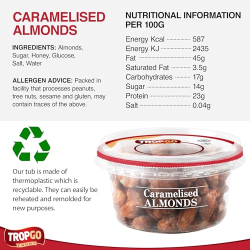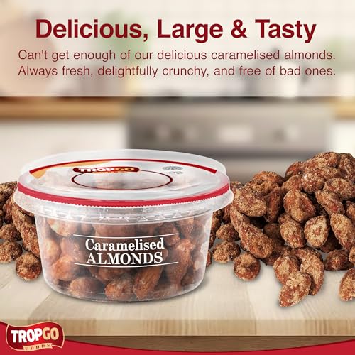 Tropgo Caramelised Almonds 180g – Pack of 2 -Sweet Nuts in a Resealable and Recyclable Nut Tub – Wholesome Trail Mix with Fibre Protein and Essential Minerals – Healthy Nuts for All Ages