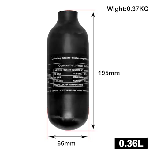 TUXING 4500Psi Carbon Fiber Air Tank,0.36L/360CC/21Cu in Pcp Air Tank,HPA Composite Cylinder for PCP Paintball Fill Station Airgun Charging System