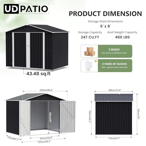 UDPATIO Metal Outdoor Storage Shed 8FT x 6FT, Outside Lockable Garden Shed Steel Anti-Corrosion Outdoor Storage House with Lockable Door for Trash Can, Bike, Backyard Garden Patio, Dark Grey