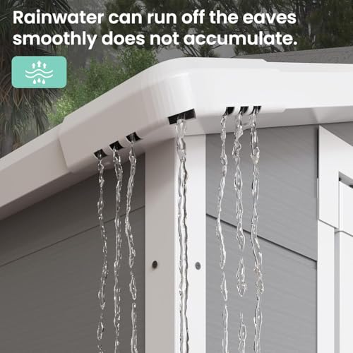 - 🏡【ECO-FRIENDLY RESIN MATERIAL】Our storage shed is crafted with 12MM premium polypropylene resin plastic, which is recyclable and eco-friendly. Resin shed is corrosion-resistant, waterproof, rustproof and with UV protection for more than 8000 hours, less bending and puncturing, worry-free for use in all weather conditions. It can be used daily for five years without fading.