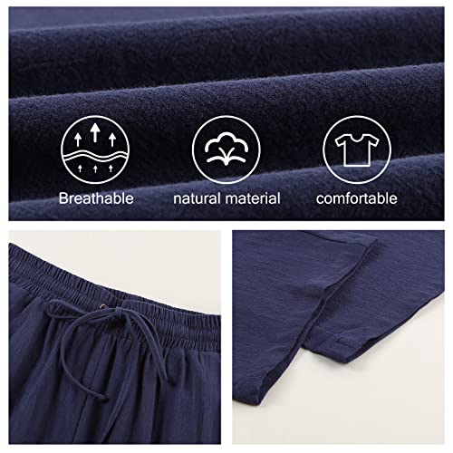 UMIPUBO Womens Straight Leg Jogger Trousers Cotton and Linen Full Length Casual Full Elasticated Waist Bottoms Summer Drawstring Pants (Navy, M)