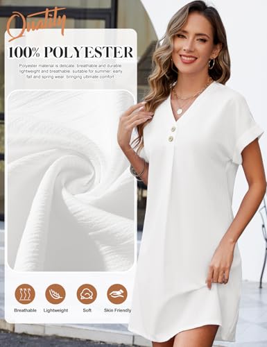 UMIPUBO Women's Summer Dress Elegant Short Sleeve Sundress V Neck Wrap A-Line Midi Dresses Plus Size with Buttons for Causal Beach Vacation (White, M)