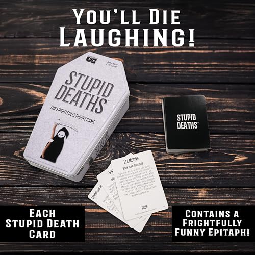 University Games Stupid Deaths Coffin Tin Game, Large, Grey
