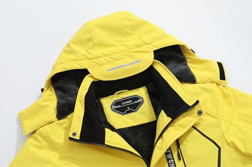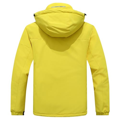 UTWGN Men's Ski Jacket Winter Warm Snow Coat Waterproof Windbreaker Hooded Work Outerwear Snowboarding Jackets, Yellow, S