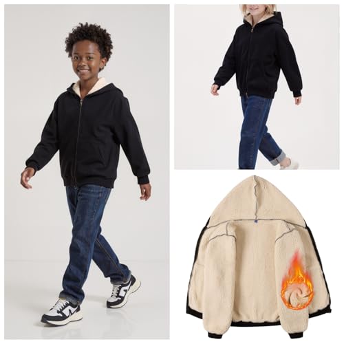 Valcatch Boys Girls Fleece Zip Up Hoodie Jacket, Kids Sherpa Lined Sweatshirt with Hoody and Pocket, Soft Thick Warm Long Sleeve Zipped Coat, Fall Winter Hoodies Outerwear for Casual School Outdoor