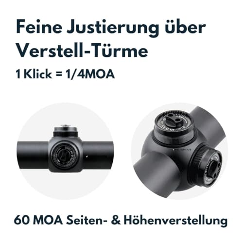 - VMD-2 reticle 1/4MOA Click adjustments allow you to get on target without the use of any tools. Windage and Elevation Range 60 MOA