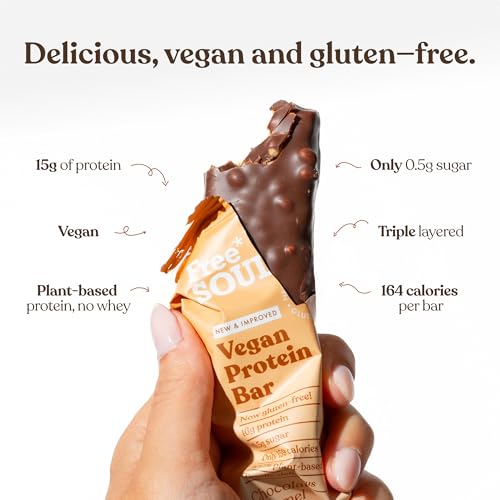 Vegan Protein Bars 12 x 50g | Plant Based Chocolate Protein Bars | Delicious Dairy Free, Low Sugar, Low Carb Bars | Sucralose Free, Gluten Free | 15g of Protein per Bar | Free Soul