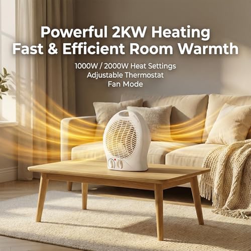 - 3-MODE 2KW RAPID HEAT: Switch between 1000W, 2000W, or only fan settings. This 2KW fan heater ensures a fast heat-up time and high heating capacity for any space room heater needs.