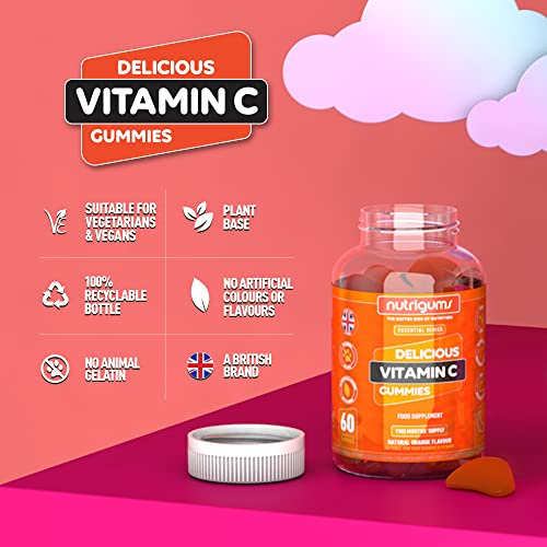 Vitamin C 80mg Gummy | Orange Flavour | 60 Vegan Gummies | Immune, Energy & Collagen Formation Support by NUTRIGUMS®