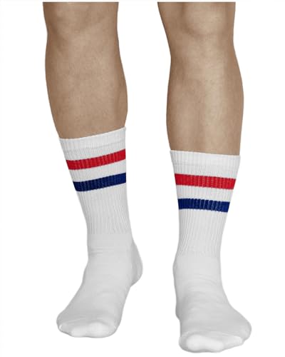 - 3-PAIR PACK OF STRIPED SPORTS SOCKS MENS 9.5-12; Designed for various sporting activities, whether it's tennis, skateboarding, roller skating, gym workouts, or simply to complement your street urban look; These classic ribbed socks are perfect for adding a retro, old-school touch to an everyday casual outfit