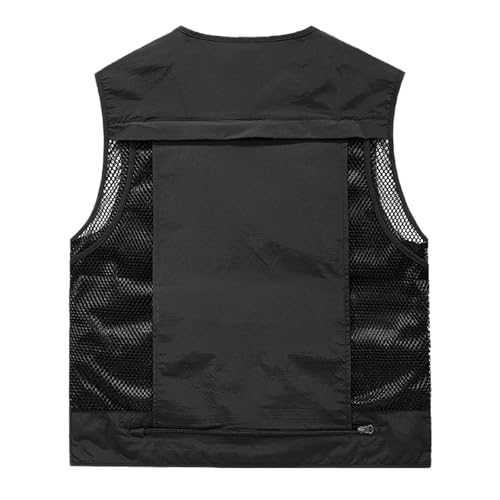 Vivikivi Men's Classical Outdoor Fishing Vest, Utility Mesh Vest Waistcoat, Multi Pockets Tactical Gilet for Safari Camera Camping Hiking Travel Cargo Hunting Walking (Black, L)