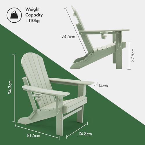 - ON-TREND SAGE GREEN: Finished in a subtle green colourway, the VonHaus folding Adirondack chair offers a modern twist on a timeless design. Add a unique touch to your garden, patio, or balcony.