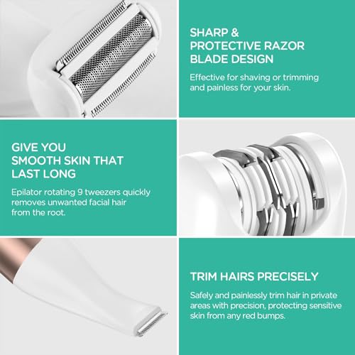- PAINLESS & SAFE – Protective razor blade design plus anti-allergy foil can closely remove the unwanted hair on your face, arm, legs, bikini line or any other body areas without pulling off your skin.
