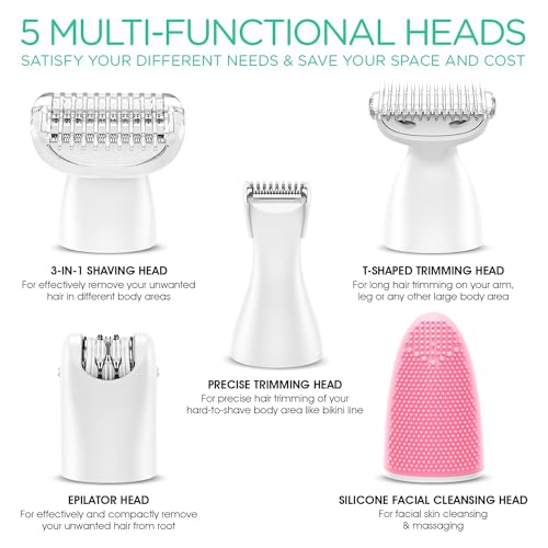 - 5 MULTI-FUNCTIONAL HEADS – Including 1 x 3-in-1 shaving head with blade comb, 1 x Trimming head with blade comb, 1 x Epilator head, 1 x Precise trimming head with limiting comb, 1 x Silicone facial cleansing head. Complete your look by change to the head & no need to buy many devices.