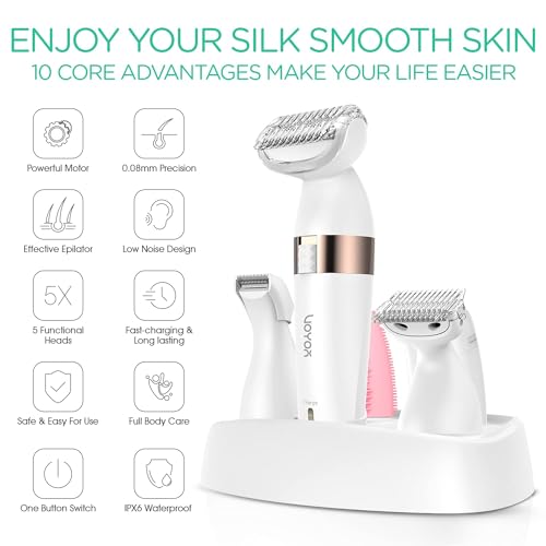 VOYOR Electric Lady Shaver Wet and Dry Rechargeable Bikini Trimmer Women Electric Razor for Women, 5-In-1 Hair Remover for Legs Armpits Bikini Cordless Waterproof Portable ES500