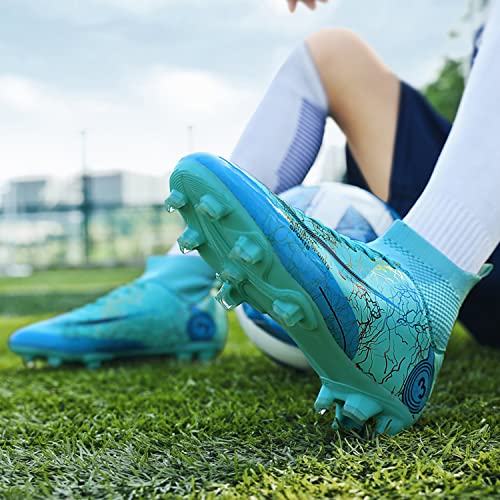 VTASQ Boys' Football Boots Kids Girls Turf High Top Spikes Non-Slip Junior Soccer Shoes Sports Shoes Soccer Athletics Training Shoes Outdoor Sneakers for Unisex Cyan 2.5UK