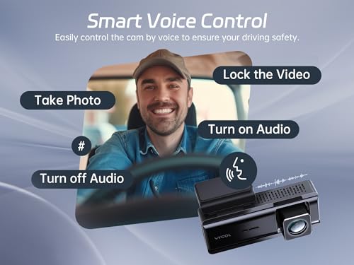 Vycol Dash Cam Front, 4K dash cam with Parking Monitor, car camera dash cam with free 32GB Card, Night Vision, 150°Wide Angle, Loop Recording, App Controlled, Voice Control, G Sensor
