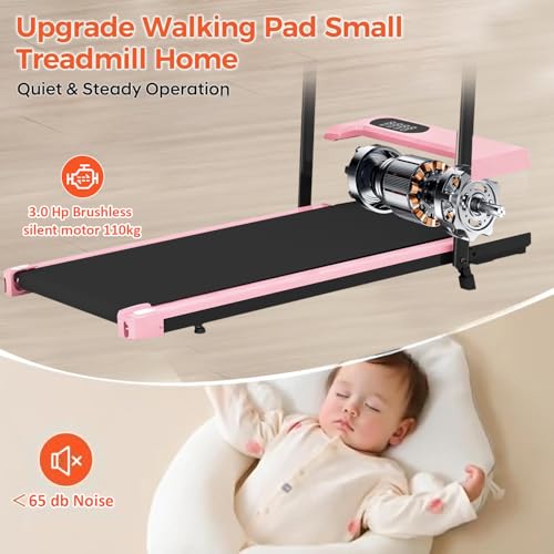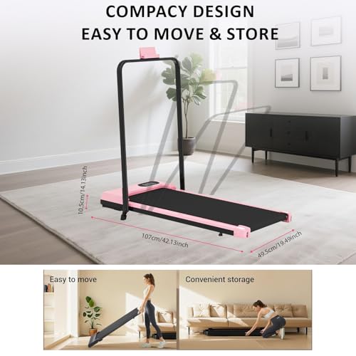 Walking Pad Treadmill for Home – Folding Under Desk Treadmill, 110KG Capacity, Remote Control & LED Display (Pink)
